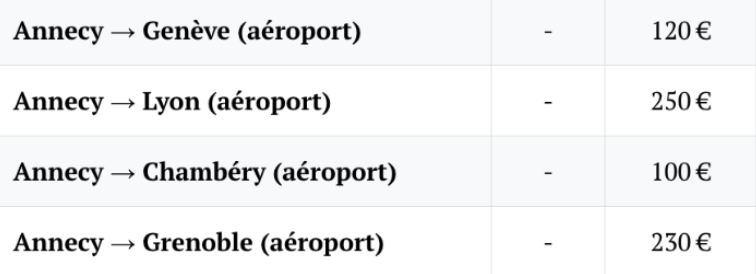 Tarifs navette